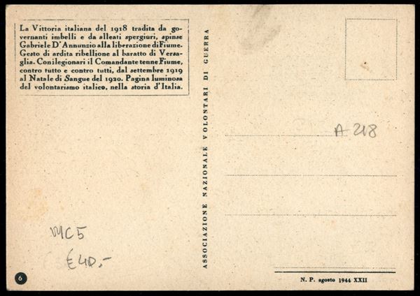1943/1944 - Propaganda - Il Poeta Soldato a Fiume (Arrasich 218) - ill. Geleng - ottimo stato - nuova