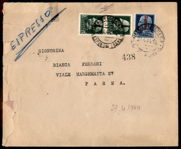 1944 - Roma - Una busta espresso affrancata con coppia 25 cent (491) + 1,25 lire (495) pił una busta affrancata con 50 cent (493) - Sorani