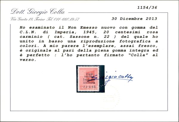 1945 - Non Emesso - 20 cent (22 varietà) con soprastampa in basso - gomma integra - non catalogato