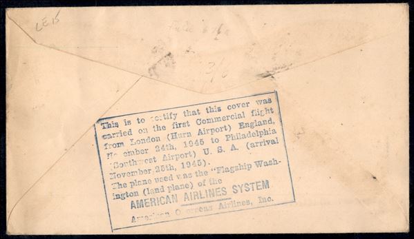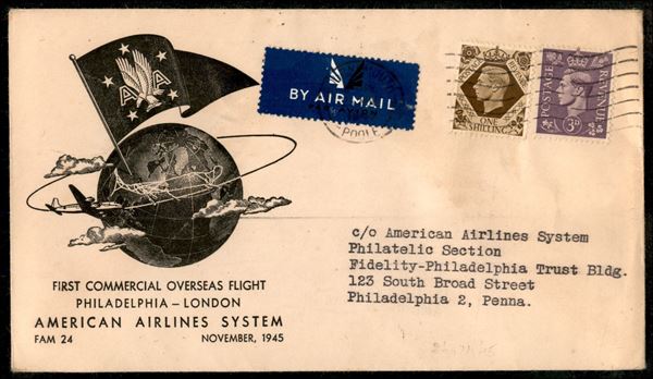 1945 (25 novembre) - Londra Philadelphia - aerogramma del volo