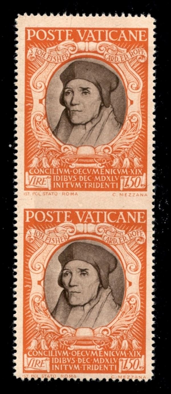 1946 - 1,50 lire Concilio di Trento (115 l) - coppia verticale non dentellata al centro - nuova con gomma integra (1.000)