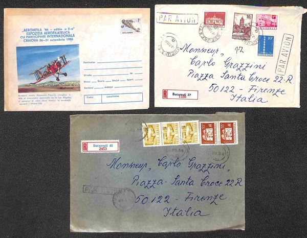 1974/1986 - Aerogrammi postali (illustrati) - 12 usati (3 raccomandati) + 1 nuovo + 2 raccomandati per Firenze con affrancature del periodo