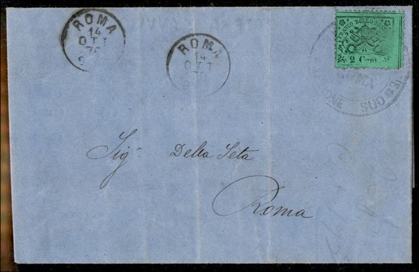 2 cent (22da) con soprastampa parziale in basso e a destra - lettera d'arrivo delle Strade Ferrate Romane/Sezione Sud per cittą del 14 ottobre 1870