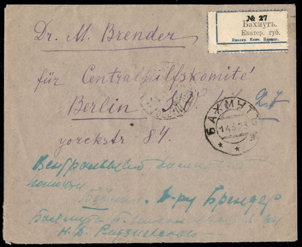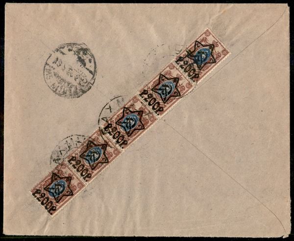 20 rubli (207) - striscia di 5 al retro di raccomandata per Berlino del 14.3.23