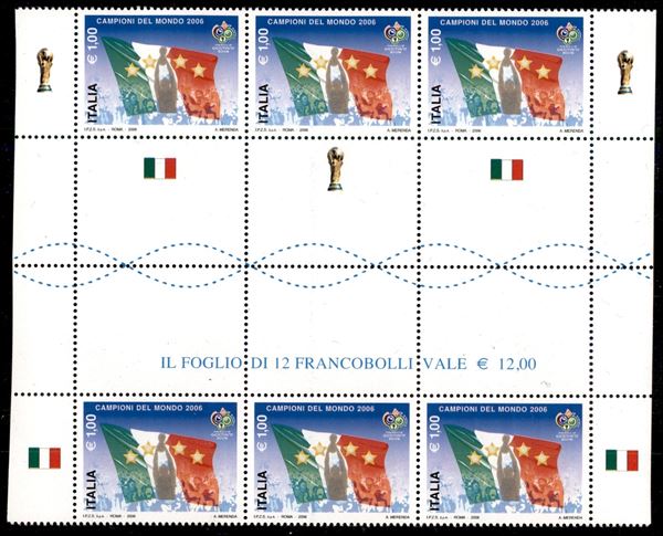 2006 - Minifogli - Campioni del Mondo (18 - varietà) con taglio spostato (interspazio al centro) - gomma integra - cert. Carraro