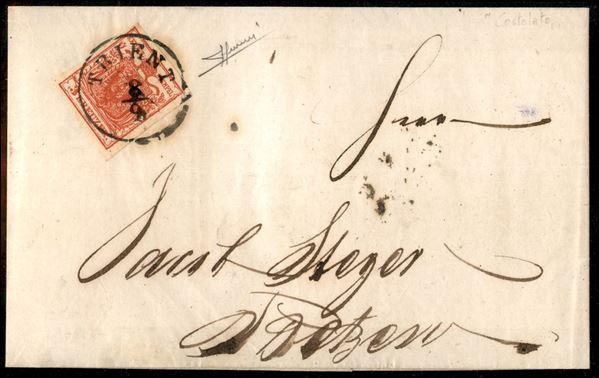 3 kreuzer (3a - carta a coste verticali) - lettera da Trento a Bolzano del 8.9.51 - Sorani (1.100+)
