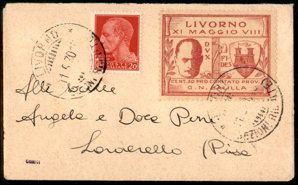 30 cent (1) + 20 cent Imperiale (247) - bustina per Pisa del 11.5.30