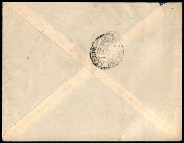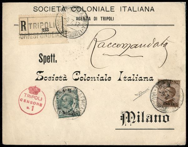 5 cent (3) + 40 cent (8) - raccomandata da Tripoli a Milano del 9.7.17 - Sorani