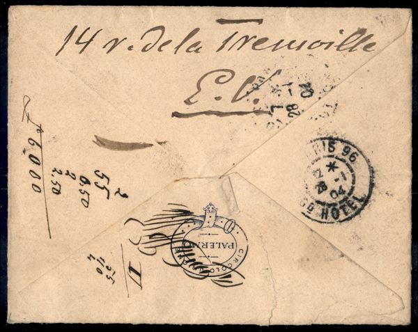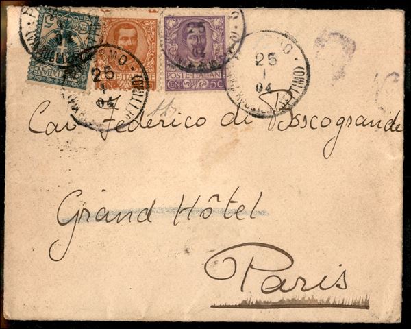 50 cent + 20 cent + 5 cent (70 + 72 + 76) su lettera per Parigi da Palermo del 25.1.04