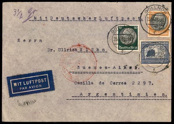 Aerogramma da Gallnow a Buenos Aires del 25.10.38