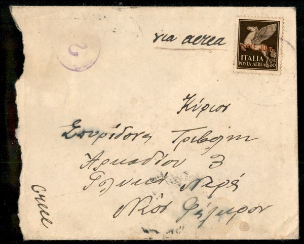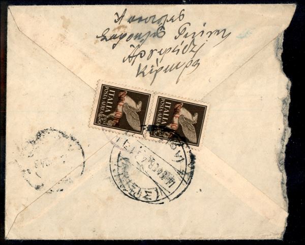 Aerogramma per la Grecia con affrancatura fronte (1 Aerea) retro (1 Aerea coppia)
