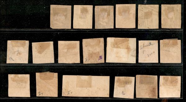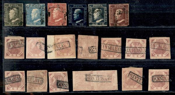 ANTICHI STATI - 1858/1859 - Cartoncino con 6 esemplari di Sicilia e 13 esemplari compresa una coppia di Napoli - tutti usati - da esaminare
