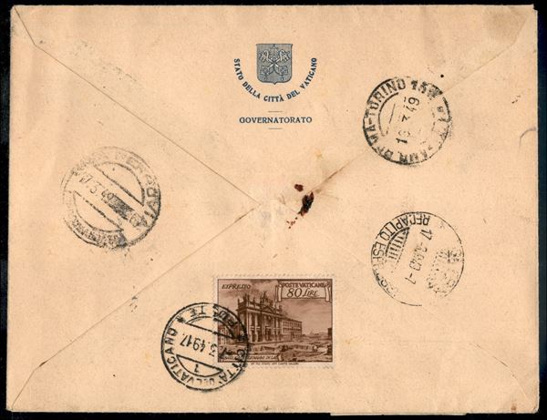 Basiliche serie completa + espressi (122/31 + Espressi 11/12) su raccomandata del 7.3.49 per Pisa con bollo d'arrivo - un valore al verso
