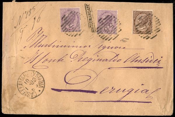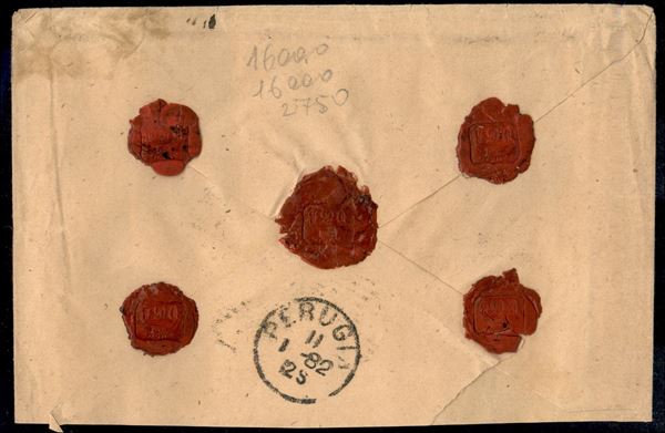 Busta raccomandata gr. 26 per Perugia da Castellamare di Stabia del 10.1.82 affrancata con due 60 cent + 30 cent (19 + 21) - ceralacche al verso