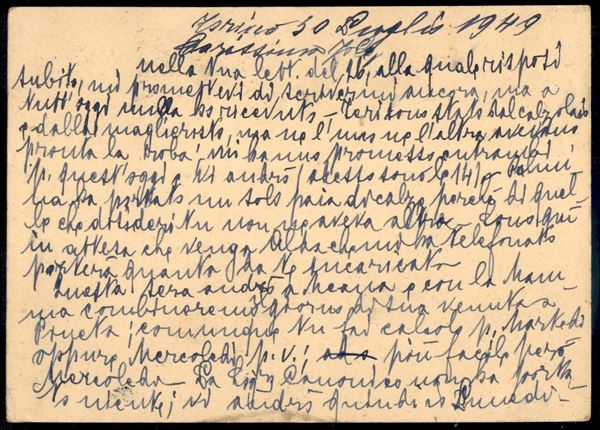 Cartolina Postale Fiaccola 6 lire (C138) in tariffa 15 lire con affrancatura complementare Democratica 1 lira + 8 lire da Torino 30.VII.1949 per Sondrio