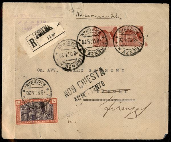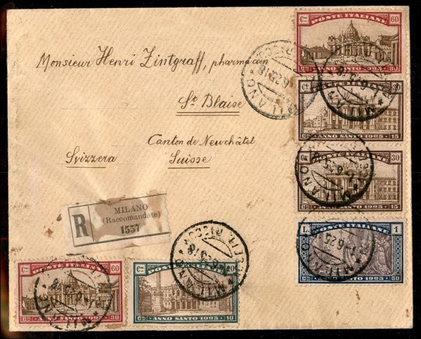 Due raccomandate pił una busta affrancate con la serie completa Anno Santo (169/174) + complementari - bell'insieme