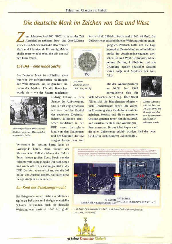 GERMANIA - 10 Jahre Deutsche Einheit - Edizione Deutsche post in elegante album