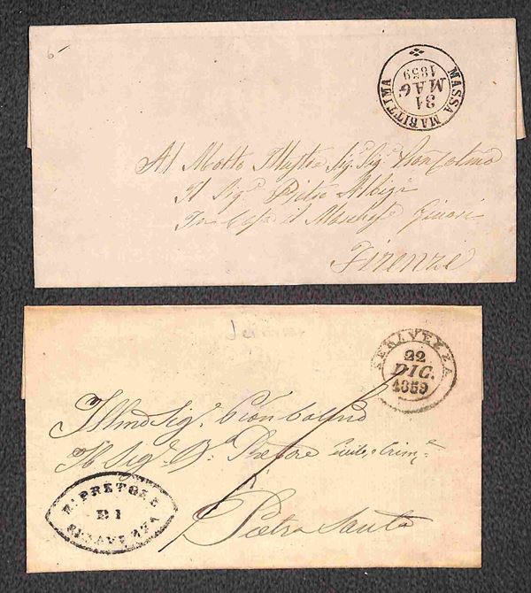 Governo Provvisorio - 4 lettere da Firenze (2 - 25/5 + 24/12) + Massa Marittima (31/5) + Serravezza (22/12)