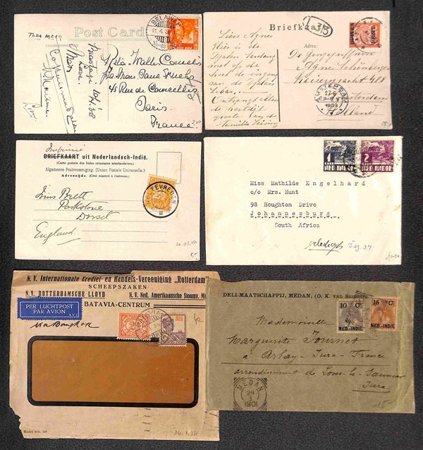Indie Olandesi - 1900/1938 - Quindici cartoline + tre buste usate nel periodo - varie destinazioni - da esaminare