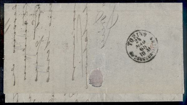 Lettera da Genova per Londra del 23 mag. 68 con 60 cent (21) isolato - timbro Compagnie Royale Hollandaise de Navigation a Vapeur Leupold Freres Genes & Naples in verde
