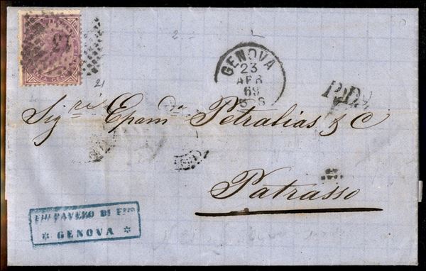 Lettera per la Grecia da Genova a Patrasso del 23 apr. 69 affrancata 60 cent (21)
