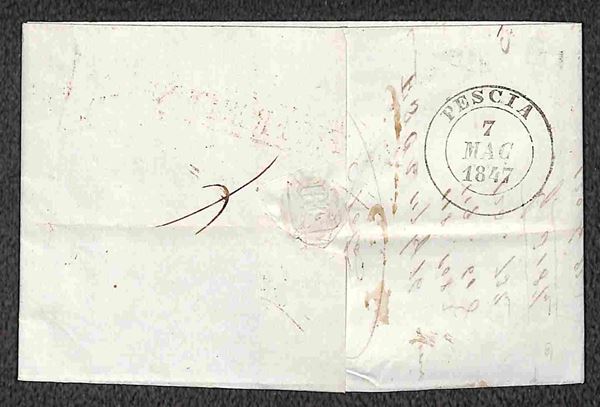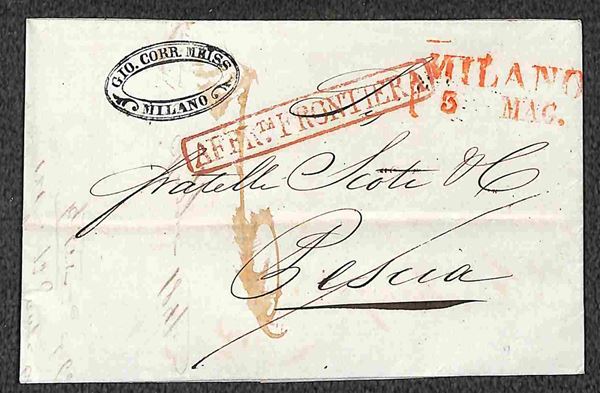 Milano + Affr. Frontiera (tutti in rosso) - due lettere per Pescia del 1842 e 1847 - tassate