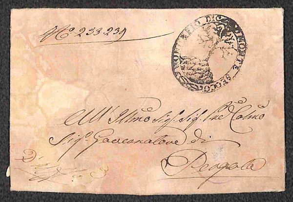 Municipio di Montesecco - lettera per Pergola del 4.12.1834 - fumigata