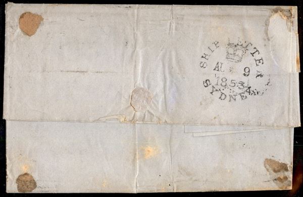 Nuovo Galles del Sud - 6 pence (8) difettoso su lettera da Sydney a New York del 9.8.1853 - da esaminare