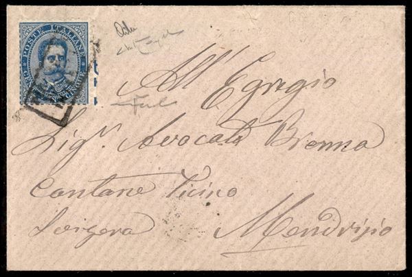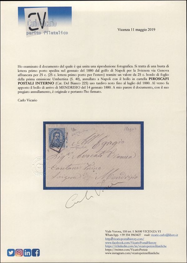 Piroscafi Postali Interno - 25 cent Umberto (40) su bustina per Mendrisio - Raybaudi