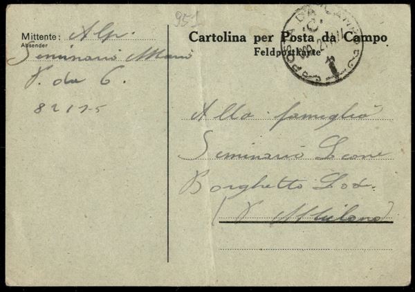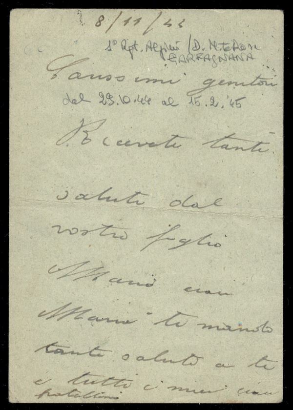 Posta da Campo C 21.11.44 (Reggimento Alpini) su cartolina per Posta da Campo per Borghetto - piega centrale
