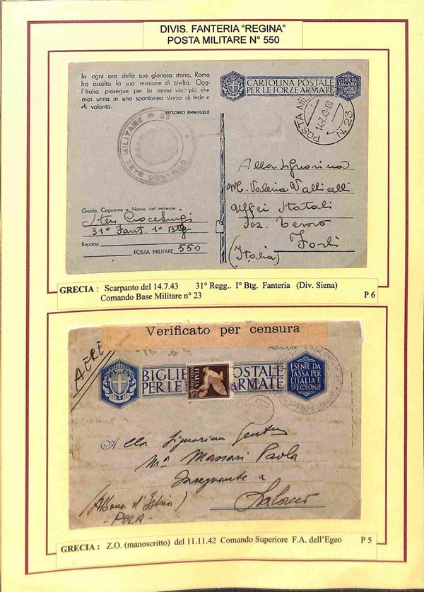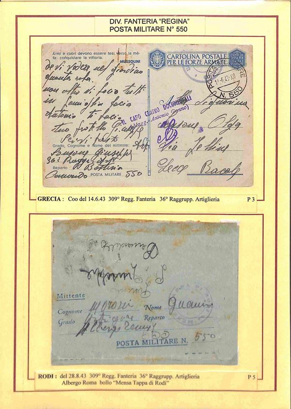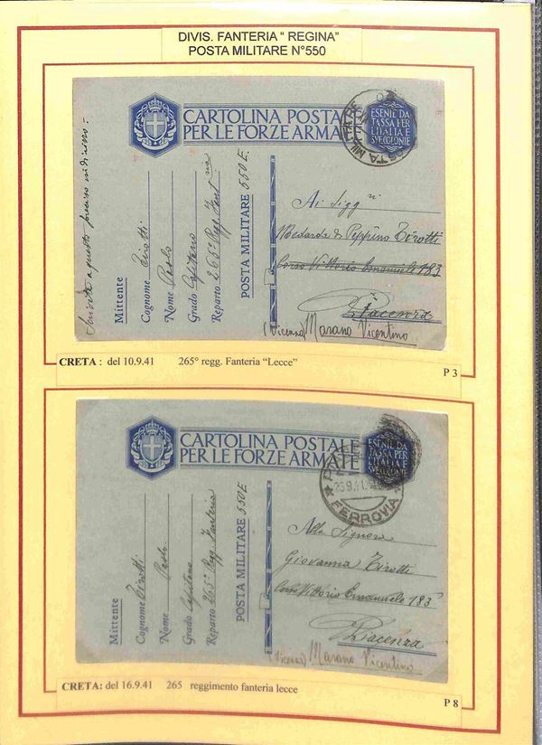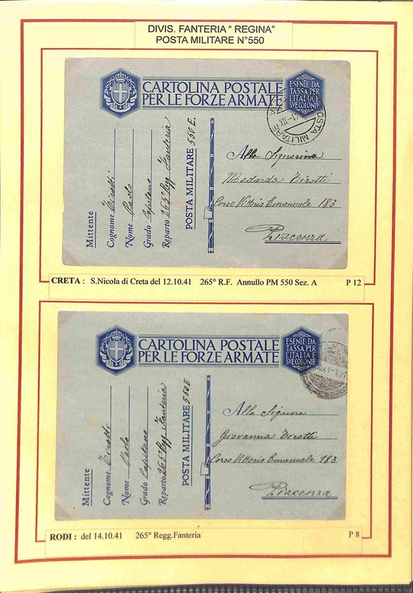 POSTA MILITARE - 1941/1943 - Posta Militare 550 - 11 lettere e franchigie del periodo per l'Italia montate su fogli d'album