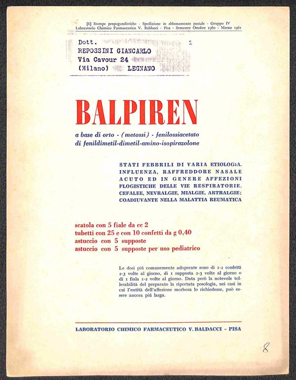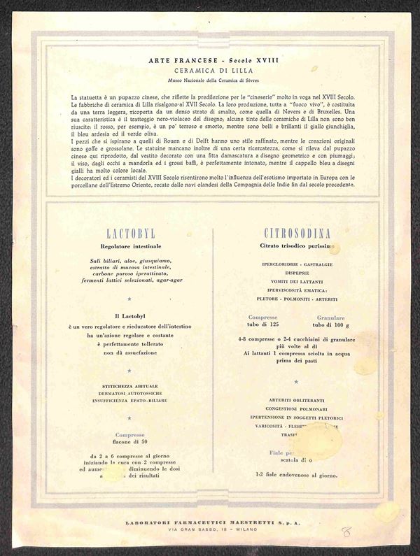 Pubblicità Farmaceutiche - quattro locandine illustrate (stampe artistiche) con al retro pubblicità di medicinali