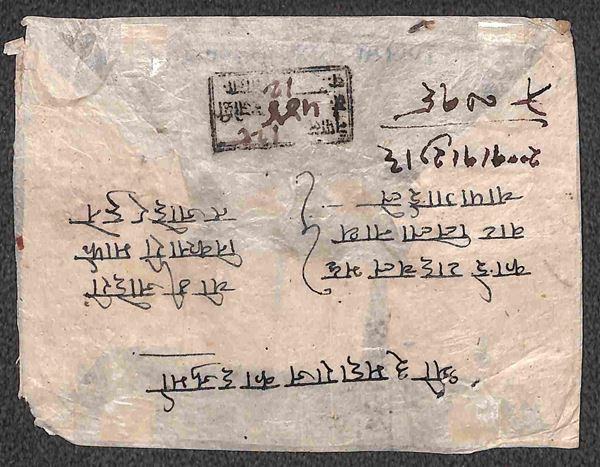 Raccomandata affrancata al retro per 28 paisa (53 tre + 55) - ex Coll. Hellrigl