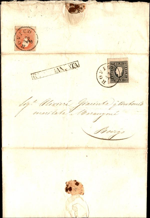 Raccomandata affrancata con 3 soldi (24) + 5 soldi al verso (25) - Rovigo 12.5.61