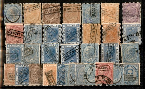 REGNO - 1863/1867 - Raccomandato - 33 valori De La Rue/Torino usati anche ripetuti - interessante insieme - merita esame