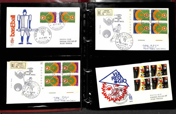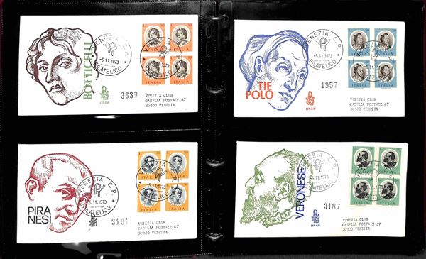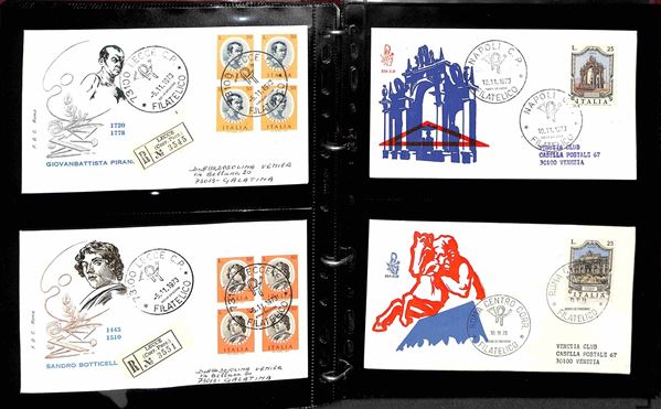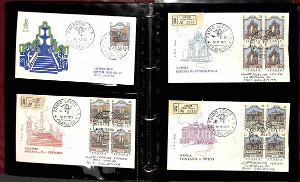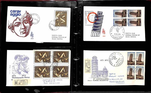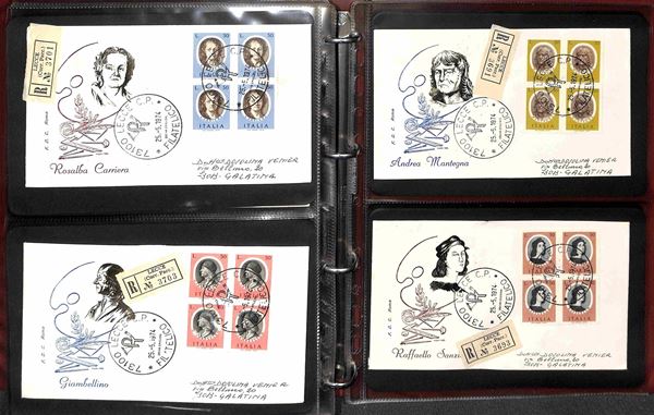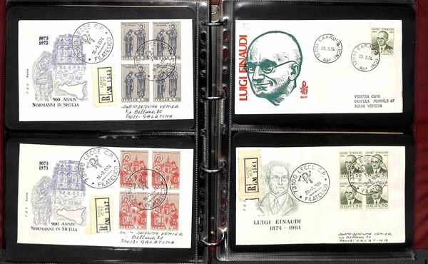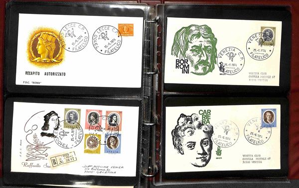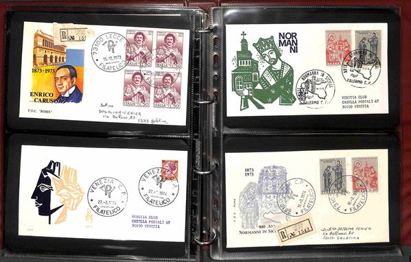 REPUBBLICA - 1973 (30 giugno)/1974 (21 giugno) - 80 buste FDC del periodo con diverse affrancature - 31 Venetia (viaggiate) + 49 Roma (43 raccomandate) in raccoglitore