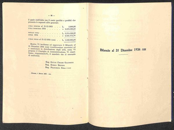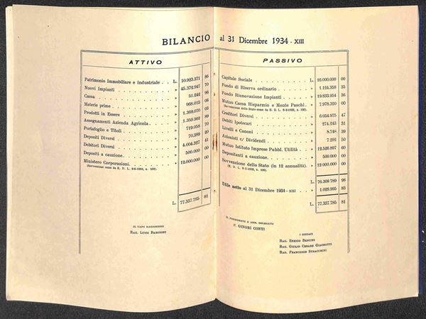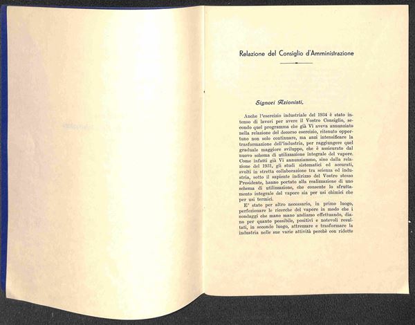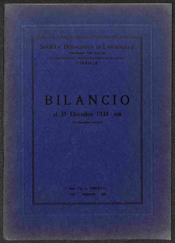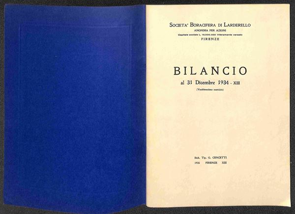 Società Boracifera di Larderello - Bilancio 31 dicembre 1934 - opuscolo copertinato di 40 pagine (Tipografia Cencetti Firenze) - in perfette condizioni