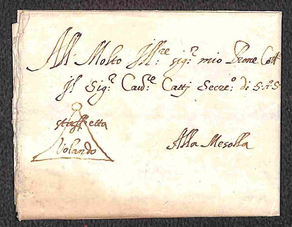 Staffetta volando - lettera indirizzata al Cav. Catti Segretario S.A.S. di Cesare d'Este del 1873