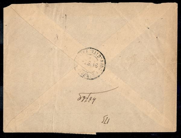 Striscia di tre + singolo 2,55 lire Imperiale + Democratica coppia 40 cent + 3 lire (256 + 546 + 553) su raccomandata da Borgo a Buggiano 5.6.46 per Figline Valdarno
