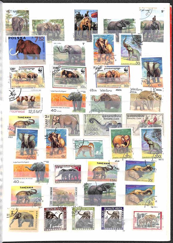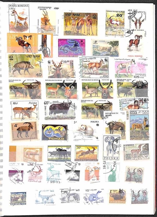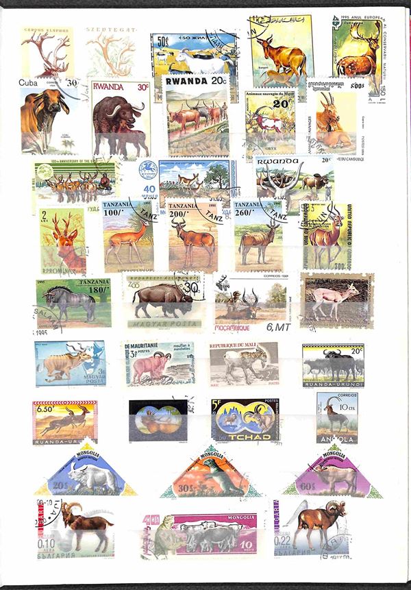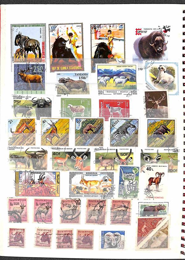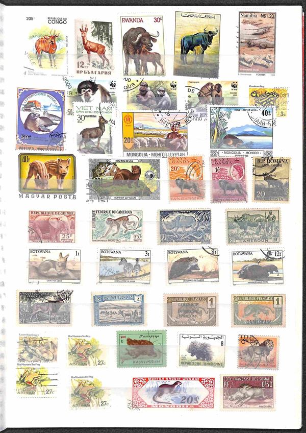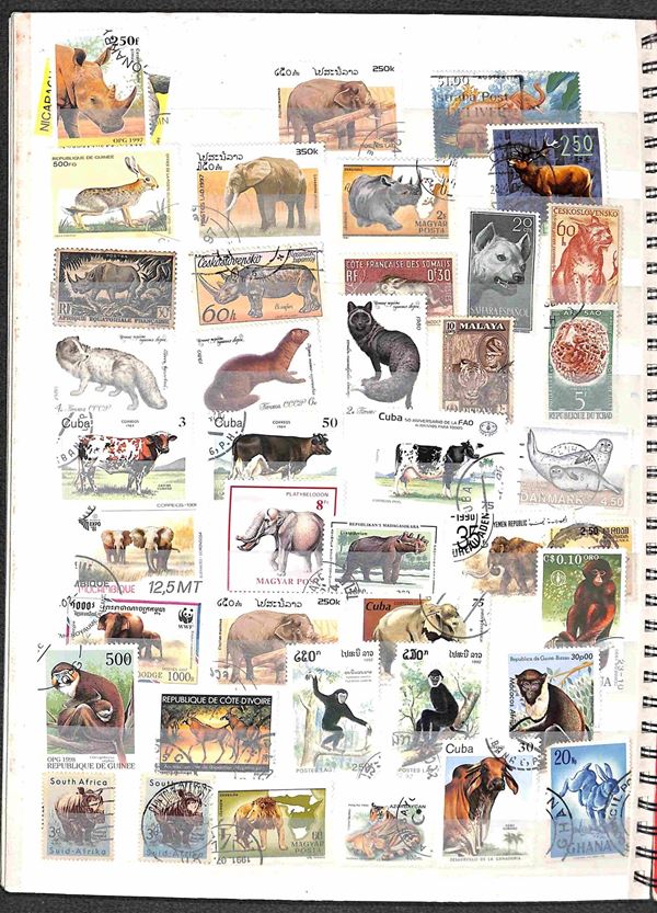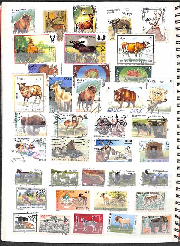 TEMATICA - Animali - Collezione di circa 390 francobolli principalmente usati + 3 buste e 4 cartoline montati in classificatore - da esaminare