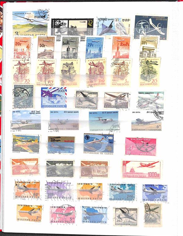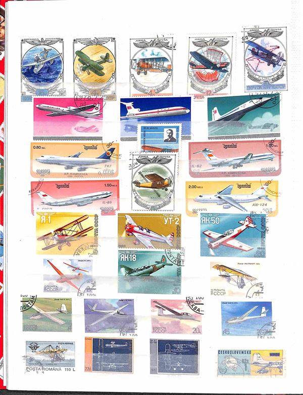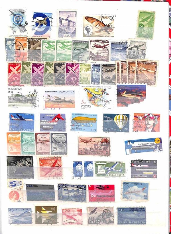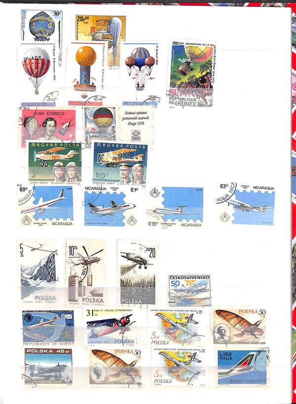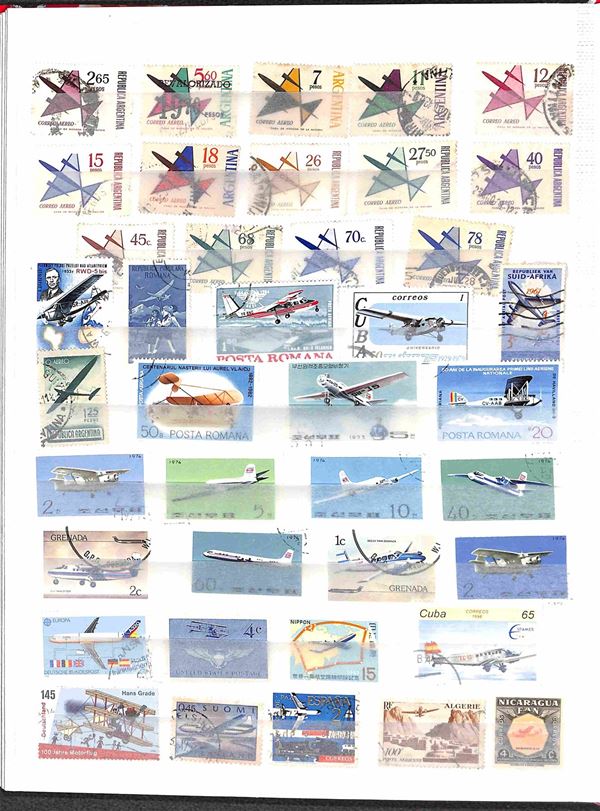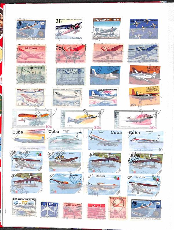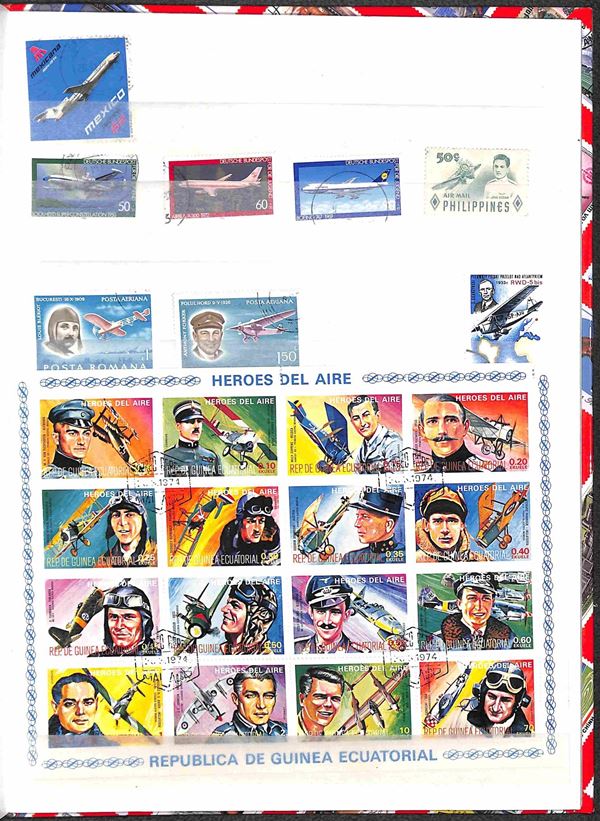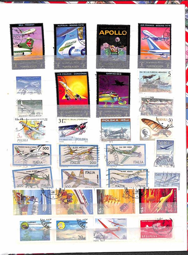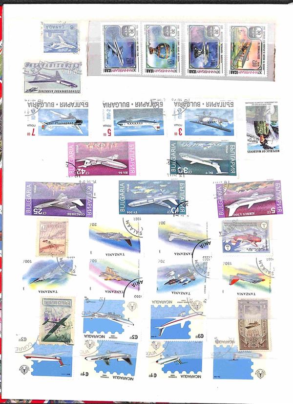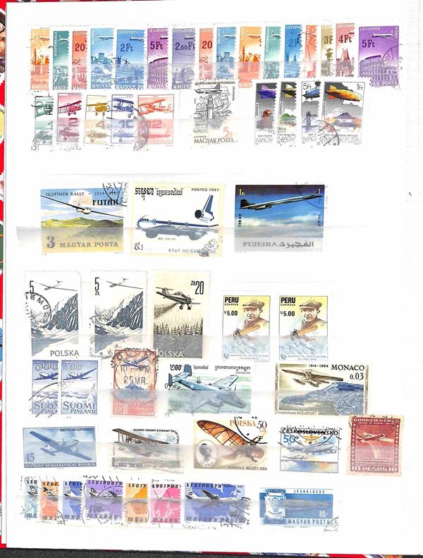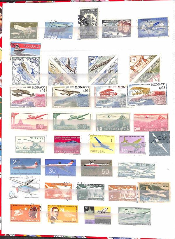 TEMATICA - Aviazione - Collezione di circa 550 francobolli principalmente usati + 11 buste e cartoline montati in classificatore - da esaminare