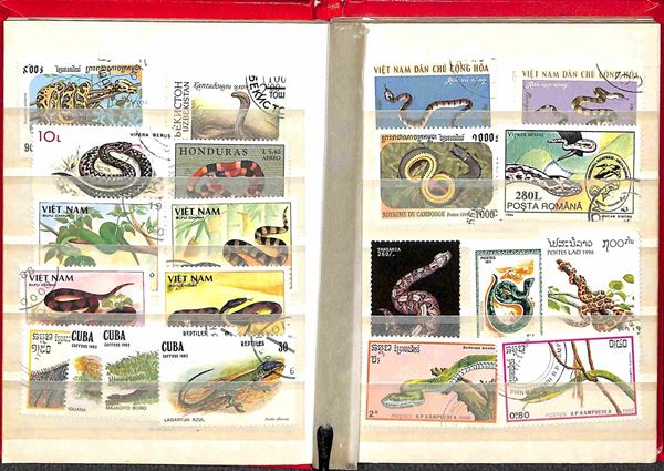 TEMATICA - Serpenti - Classificatore con francobolli in prevalenza ysati della tematica - da esaminare