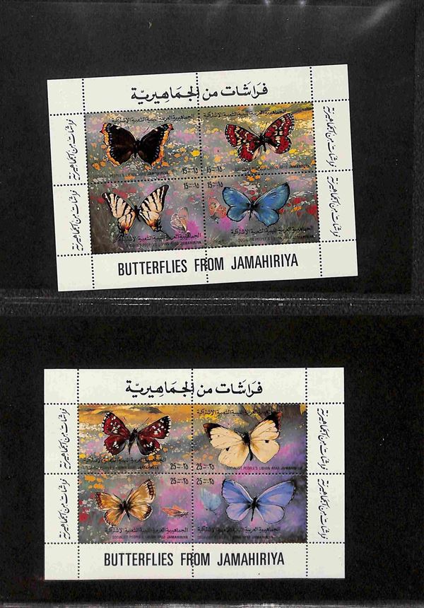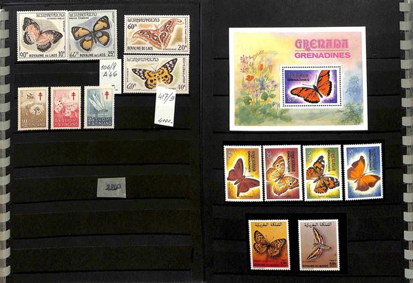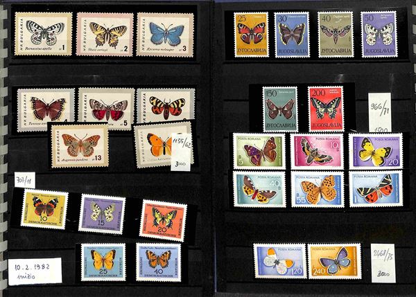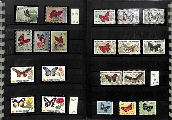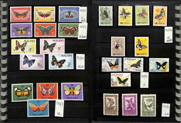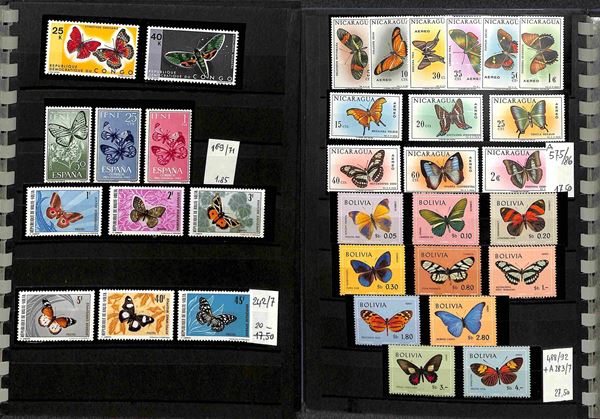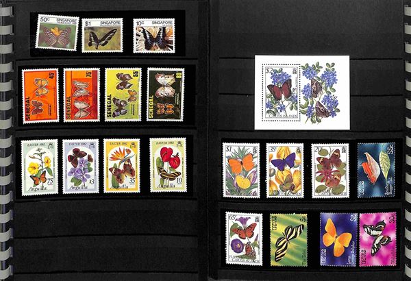 TEMATICA FARFALLE - Insieme di oltre 120 valori + alcuni foglietti in 2 piccoli raccoglitori - gomma integra