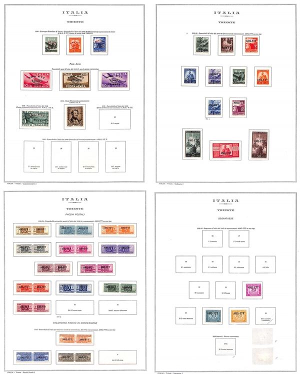 TRIESTE A - 1945/1954 - Collezione di valori del periodo in 12 fogli King Marini - gomma integra e originale - da esaminare (700+)