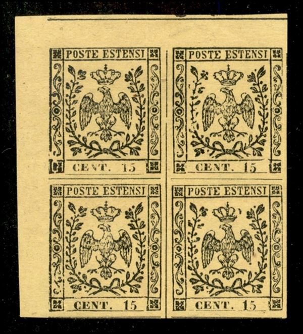 1852 - 15 cent (3) - quartina angolare - coppia inferiore gomma integra