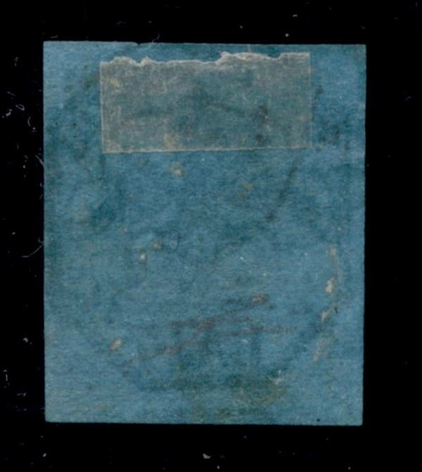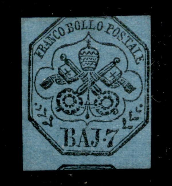 1852 - 7 baj azzurro (8) corto in alto ma con parte inferiore del francobollo - gomma originale - cert. Diena