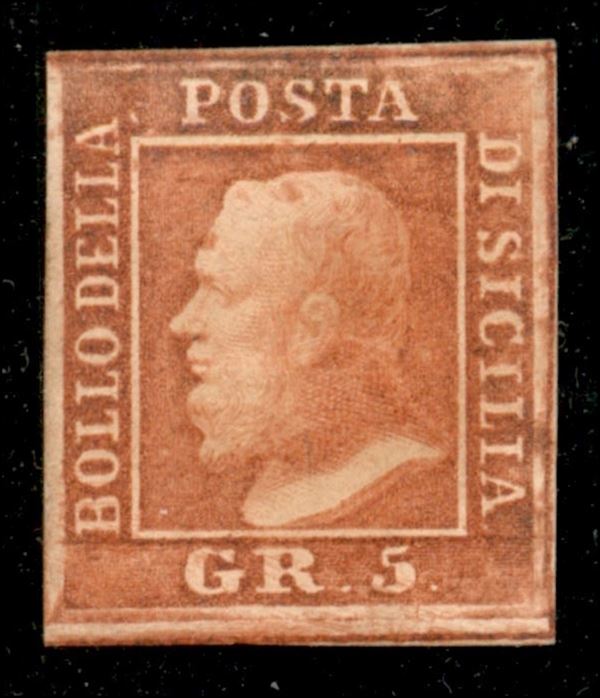 1859 - 5 grana vermiglio (10) - gomma originale - Diena (1.500)