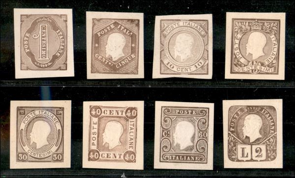 1863 - Saggi Grazioli (20/27) - serie completa - in bruno - carta bianca - senza gomma - Sorani