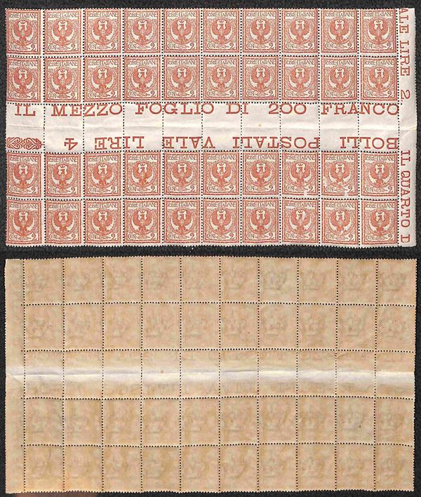 1901 - 2 cent Floreale (69) - blocco orizzontale di 40 con interspazio di gruppo al centro - gomma integra (1.800+)