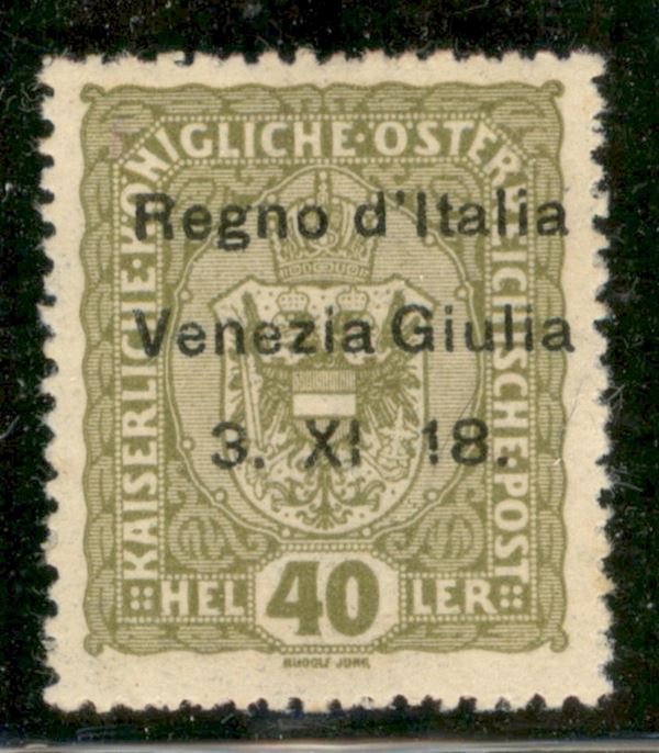 1918 - 40 heller soprastampato (10 o) - senza punto dopo "XI" - gomma integra